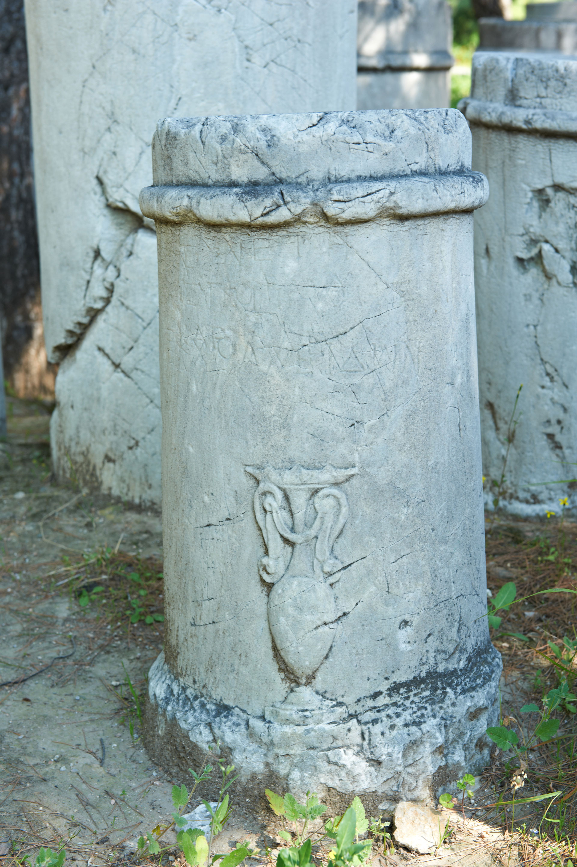 Κεραμεικός. Ανάγλυφη παράσταση αγγείου σε επιτύμβιο κιονίσκο. Μικρή νότα πολυτέλειας στο λιτό μνημείο που επέβαλε ο νόμος του Δημητρίου Φαληρέα (317-307 π.Χ.).