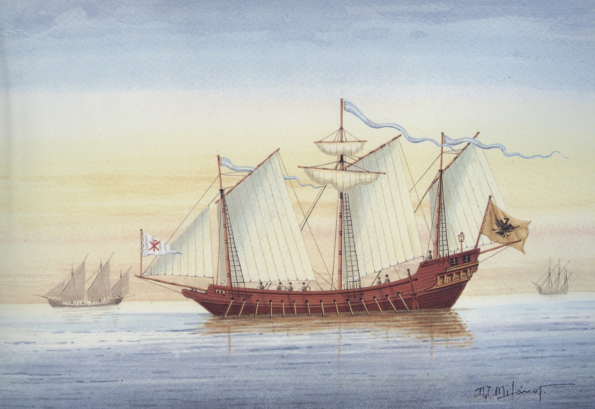 Πηγή : “Ελληνικά πλοία του Μεσαίωνα” , Εκδόσεις : Ευρώπη | Κείμενα : Δημήτρης Μιχαλόπουλος – Εικονογράφηση : Αντώνης Μιλάνος.