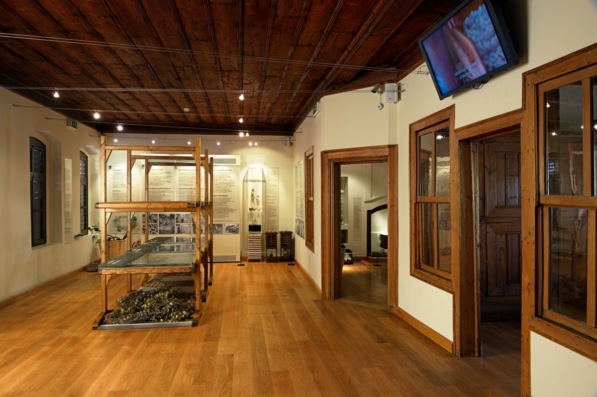 Διακρίνεται η κρεβάτα της σηροτροφίας και η είσοδος στους εκθεσιακούς χώρους.