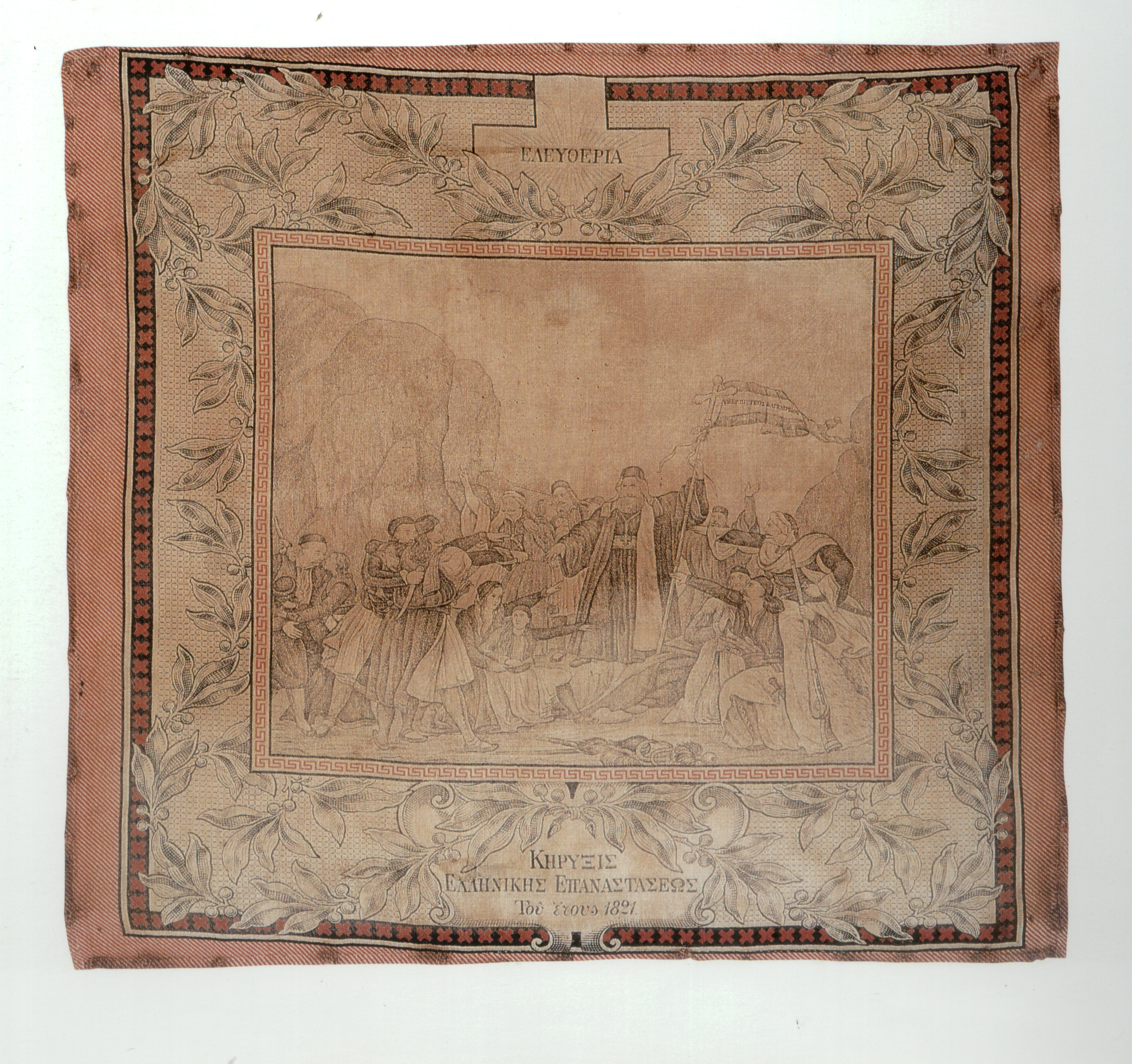 Στο κέντρο ο Παλαιών Πατρών Γερμανός υψώνει τη σημαία της Επανάστασης του 1821.