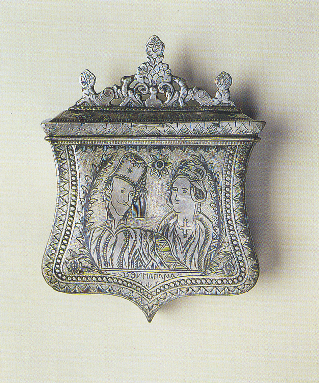 Μπαρουτοθήκη ασημένια, με παράσταση Όθωνα και Αμαλίας. 19ος αι.