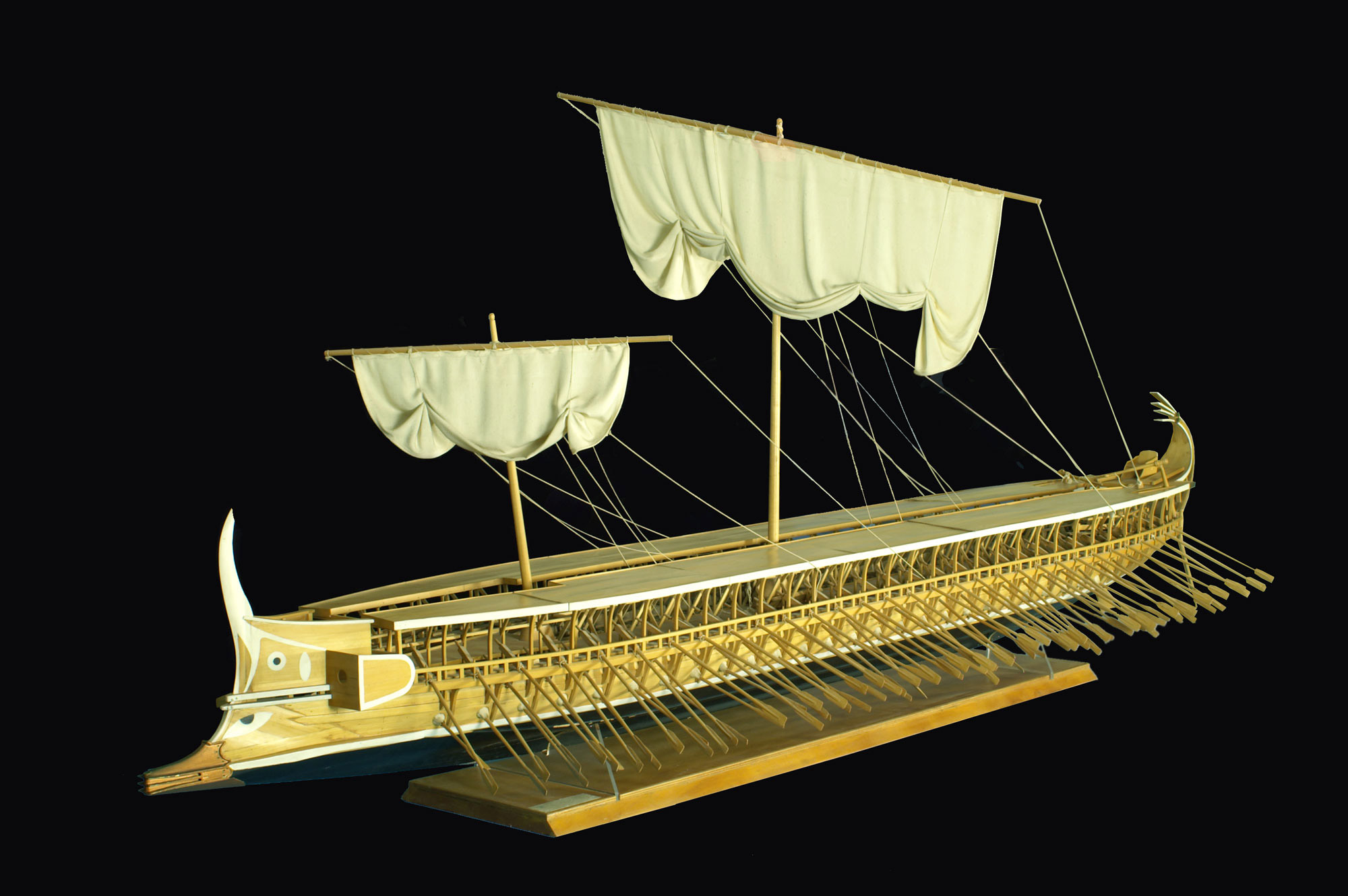 Ομοίωμα αθηναϊκής τριήρους του 5ου αι. π.Χ. Κλίμακα: 1/10. Κατασκευή: Γ. Μαργαρώνης (Εργαστήριο ναυπηγικής ΕΜΠ). Έρευνα και σχεδια: J. Morrison και J.F. Coates.