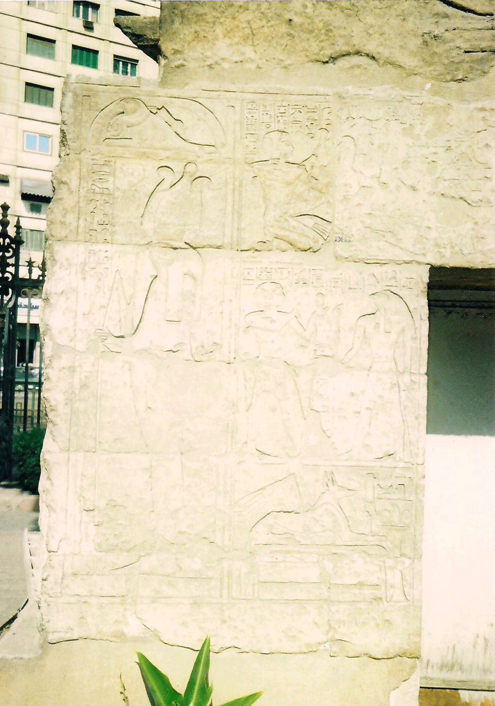 Ανάγλυφη διακόσμηση από το παρεκκλήσιο του Σεσόνκ, Μεγάλου Ιερέα της Μέμφιδας. Τέλη 10ου, αρχές 9ου αι. π.Χ. Μουσείο Καϊρου, εξωτερικός χώρος.
