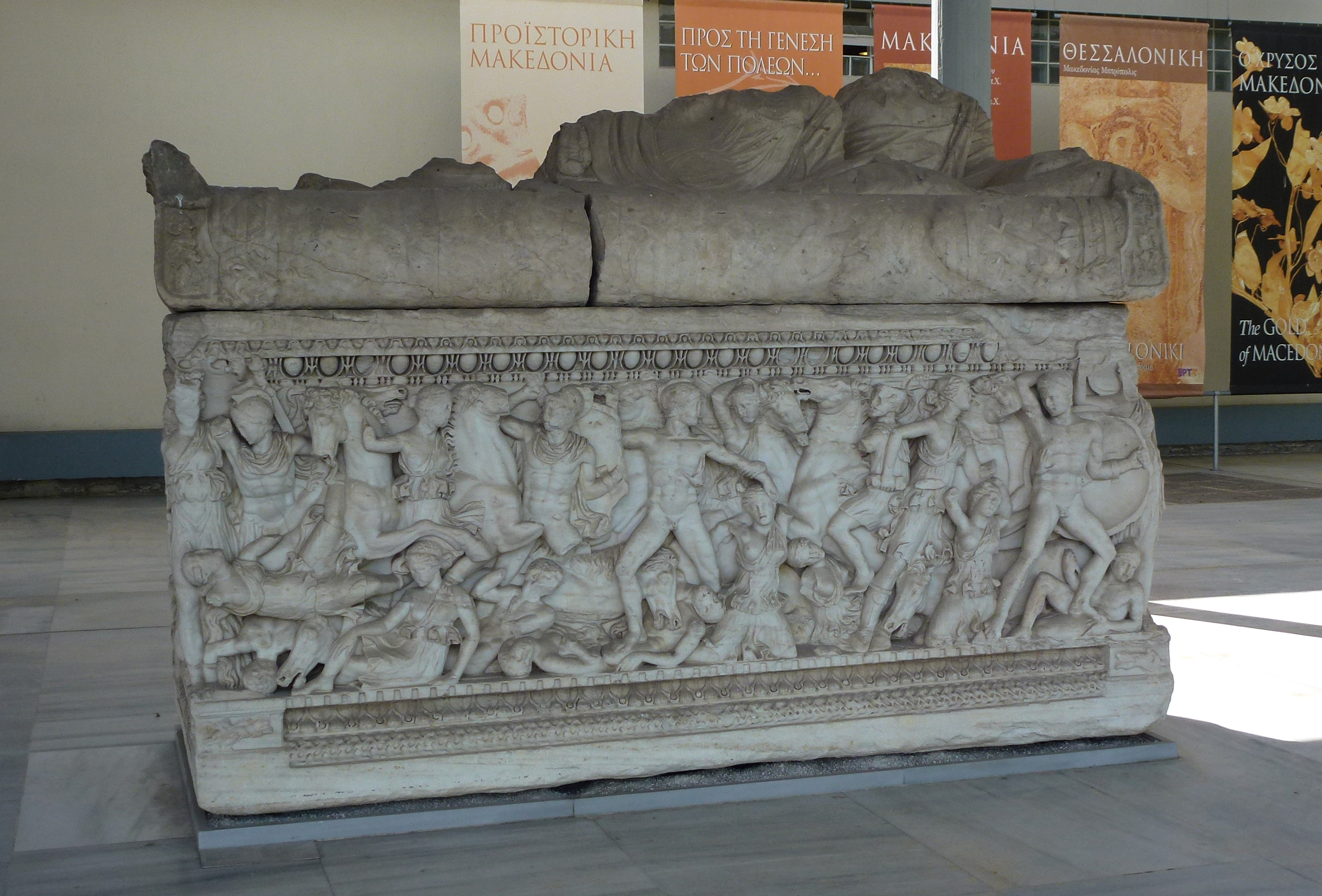 Μαρμάρινη σαρκοφάγος έξω από το Αρχαιολογικό Μουσείο Θεσσαλονίκης. Έργο αττικού εργαστηρίου, 2ος-3ος αι. μ.Χ.