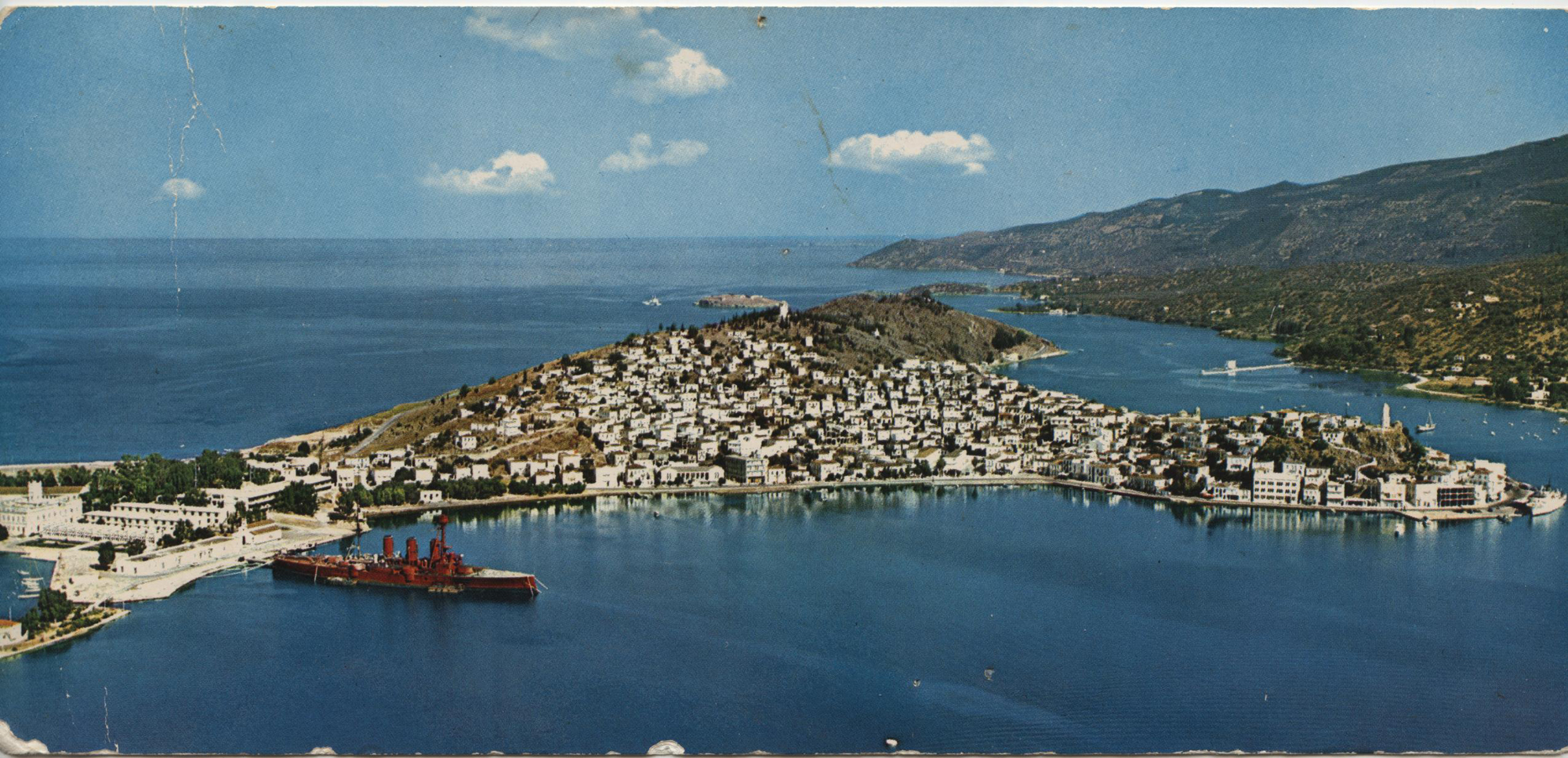 Ταχυδρομικό Δελτάριον του ’60 με θωρηκτό Αβέρωφ στο λιμάνι του Πόρου,