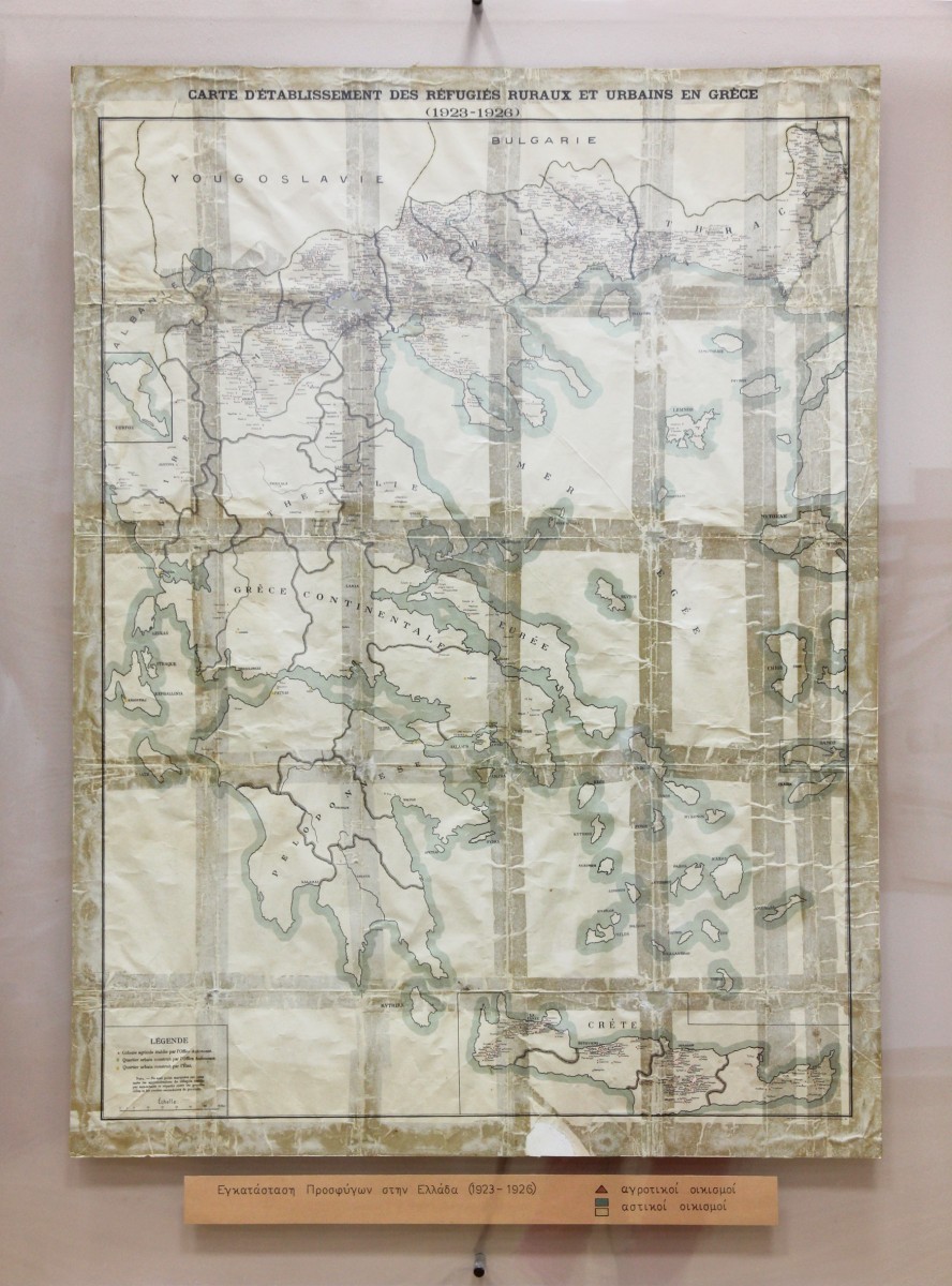 Πρωτότυπος χάρτης, όπου σημειώνονται οι αγροτικοί και αστικοί οικισμοί εγκατάστασης των προσφύγων της περιόδου 1923 – 1926.