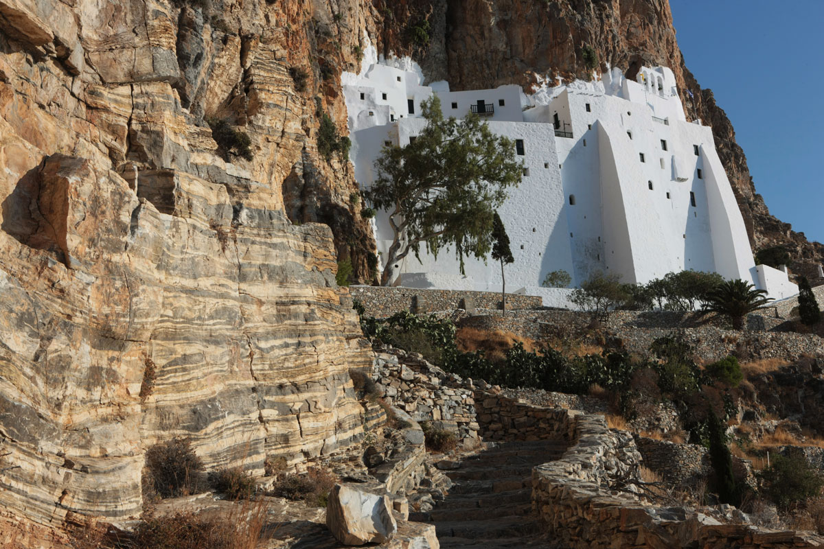 Στην Αμοργό πάνω σε έναν γκρεμό είναι χτισμένο το μοναστήρι της Παναγιάς Χοζοβιώτισσας. Xτίστηκε το 1088 μ.χ. από τον βυζαντινό αυτοκράτορα Αλέξιο Κομνηνό.