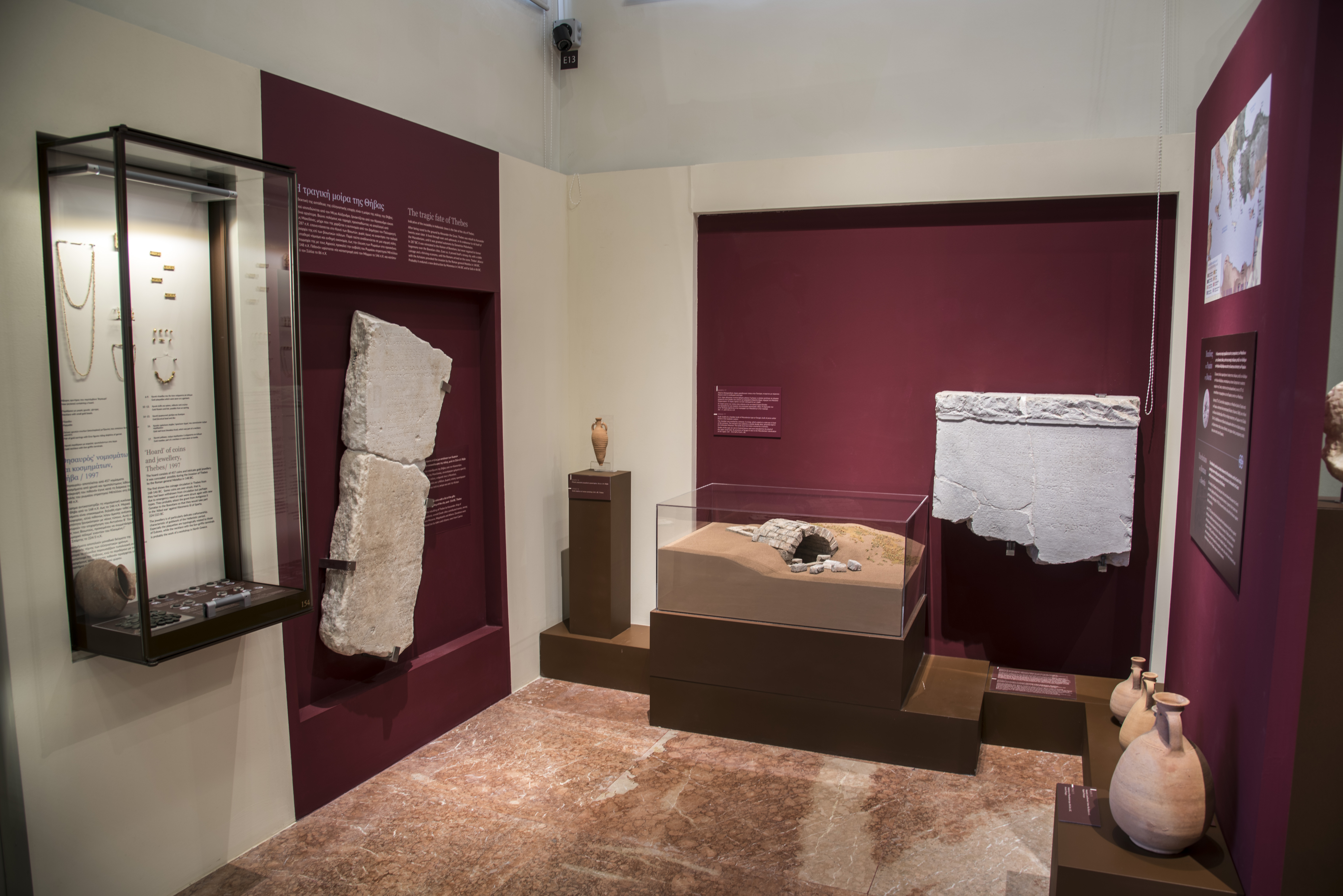 Ακολουθεί η μακέτα του τάφου μακεδονικού τύπου της Τανάγρας. Ιδιαίτερα σημαντική είναι η επιγραφή με κατάλογο των δωρεών για την ανοικοδόμηση της Θήβας, όπου μεταξύ των δωρητών αναφέρεται η Μεσσήνη, η Μεγαλόπολη, η Αθήνα, ηγεμόνες και πολίτες ακόμη και από την Κύπρο (βάθρο 78).