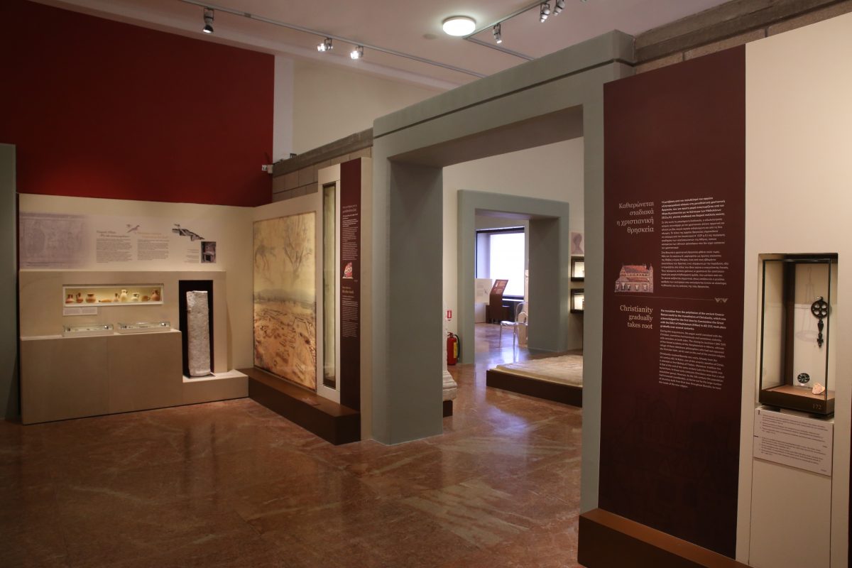Παρουσιάζονται γλυπτά από εκκλησιαστικά κτήρια της περιόδου και αντικείμενα που συνδέονται με τη νέα χριστιανική θρησκεία (προθ. 172, βάθρα 116-123), ενώ στις προθήκες 173-176 και στο βάθρο 124 παρουσιάζονται αντικείμενα σχετικά με τα