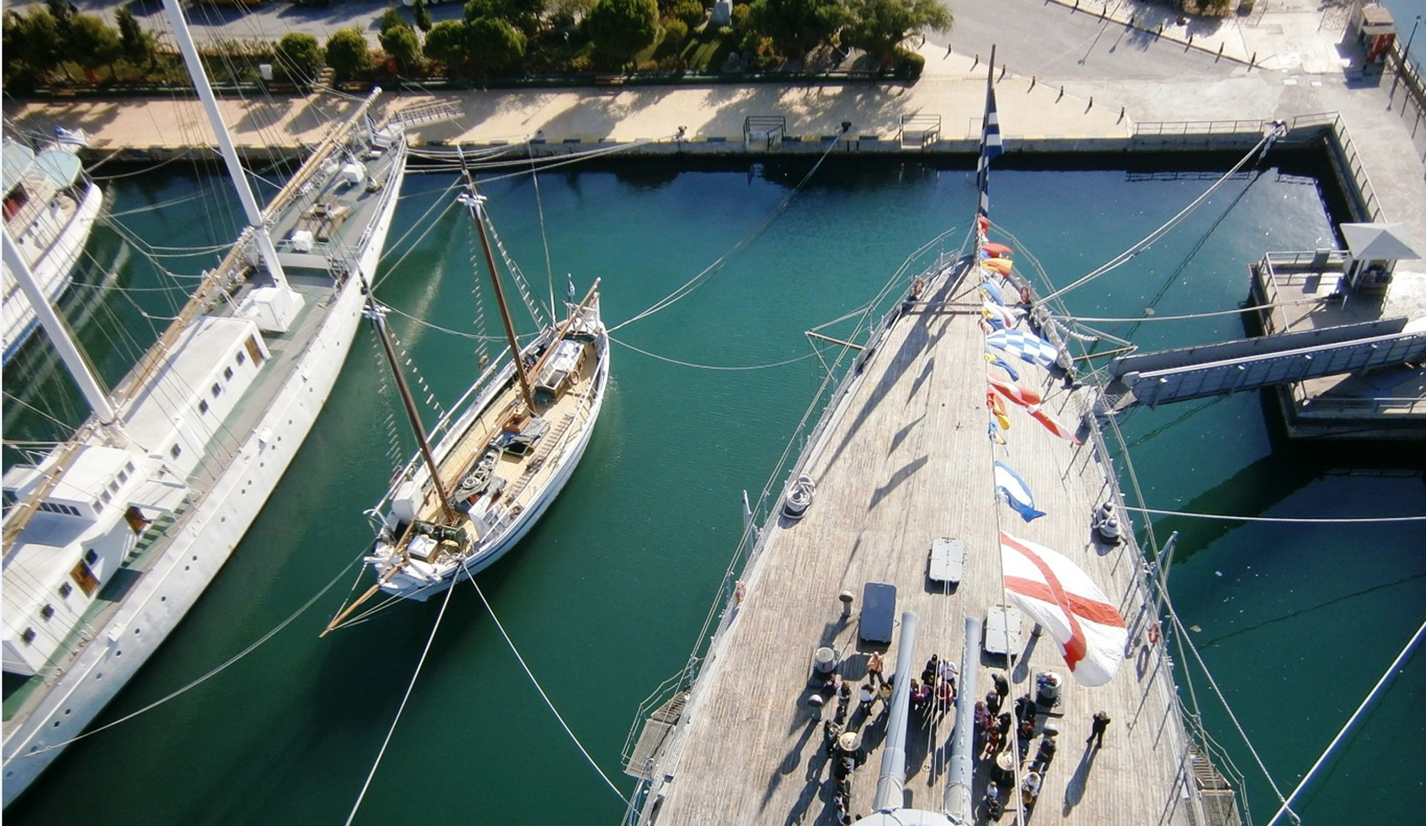 Άποψη του Πάρκου Ναυτικής Παράδοσης και του πρυμναίου καταστρώματος