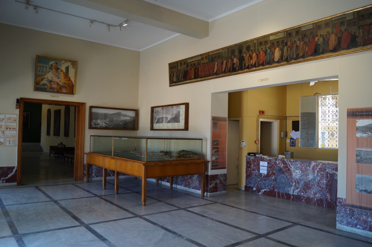 Στην είσοδο του Μουσείου μπορεί κανείς να θαυμάσει τη Λιτανεία του λειψάνου του αγίου Χαραλάμπη, μνημειακό έργο του ζωγράφου Ιωάννη Κοράη, από το ναό του Αγίου Χαραλάμπη, του 1756, καθώς και τρεις πίνακες ζωγραφικής με προφήτες, από το ναό της Παναγίας Φανερωμένης, του 18ου αι..