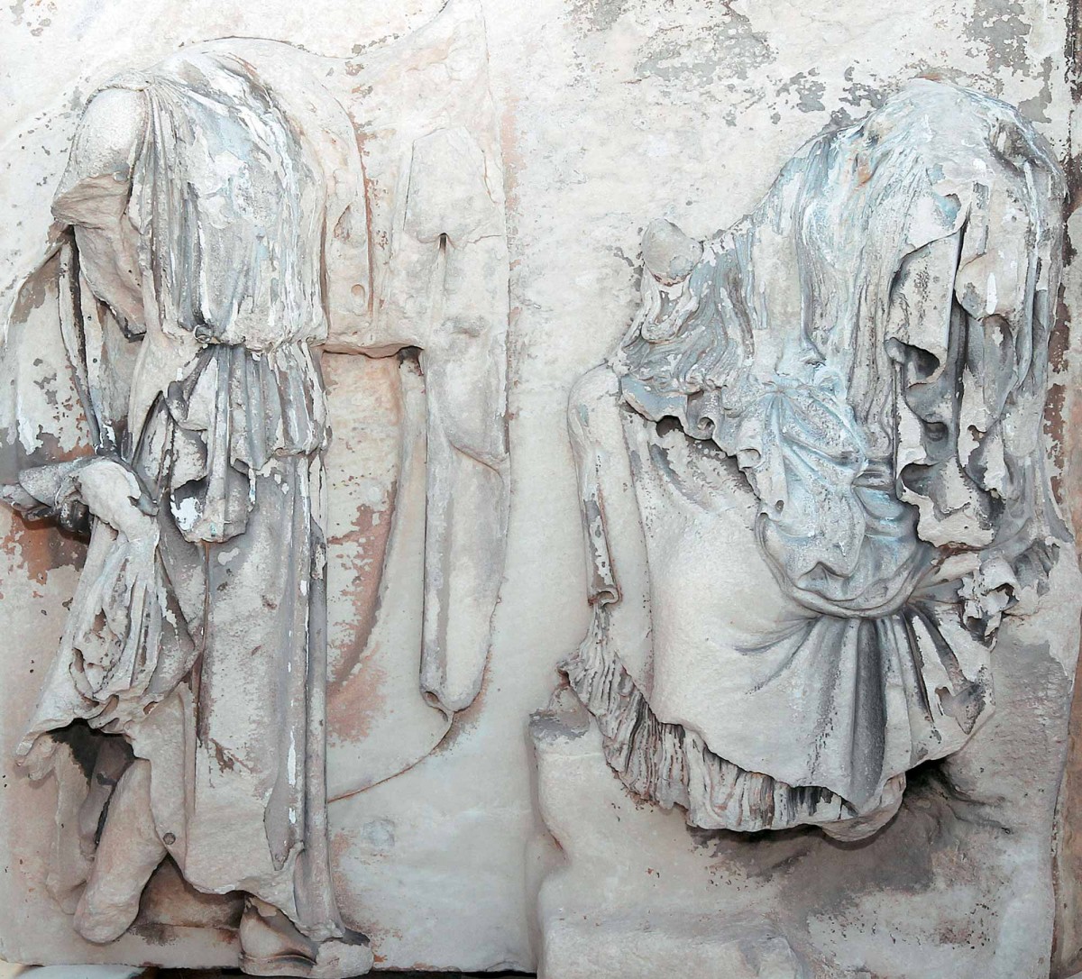 Η μετόπη αρ. 32 διασώθηκε από την καταστροφή του 5ου αι. μ.Χ. επειδή θεωρήθηκε ότι απεικονίζει τον Ευαγγελισμό της Θεοτόκου. Μαζί με τις τρεις προηγούμενες απεικονίζουν τους θεούς πάνω στον Όλυμπο που αποφασίζουν για το τέλος του Τρωικού πολέμου και για τη νίκη των Ελλήνων.