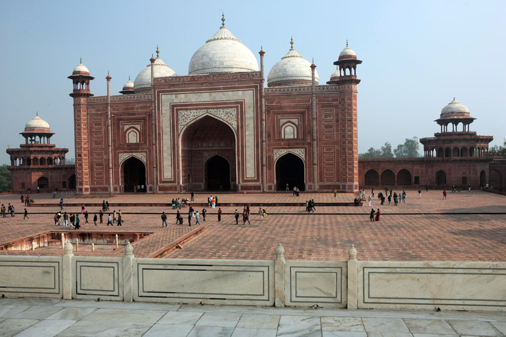 To the west of the tomb is a domed red-sunstone mosque and to the east a replica jawab put there to complite the architectual simmetry of the complex (it can not be used as a mosque as it fases away from Mecca).