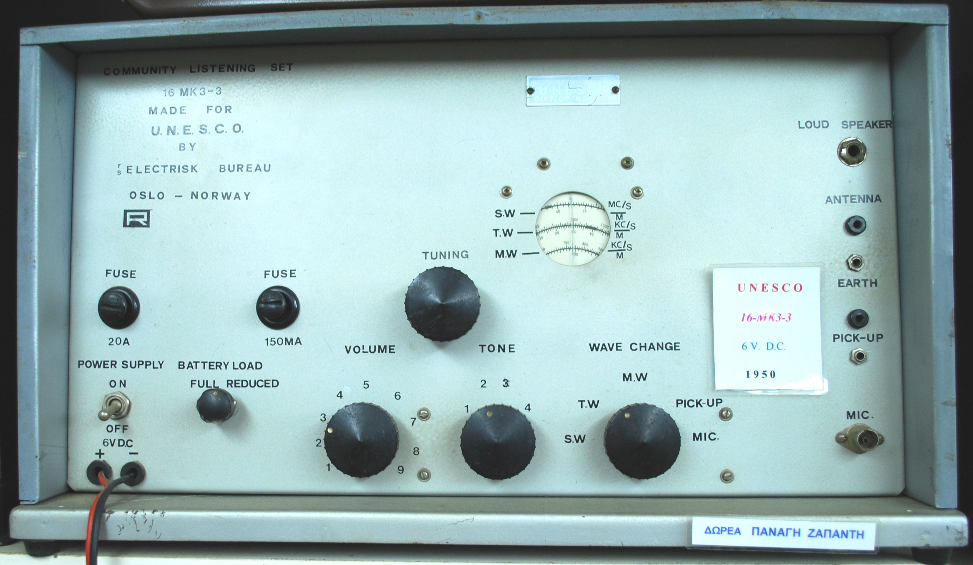 Ραδιόφωνα αυτού του μοντέλου δωρήθηκαν αρκετά στα σχολεία της Κεφαλονιάς μετά το σεισμό του 1953. Χρησιμοποιούν και μικρόφωνο ως ενισχυτές ήχου.