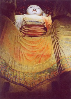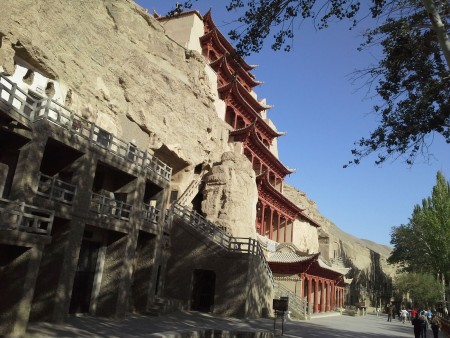 Σε απόσταση περίπου 20 χιλιομέτρων από την πόλη αυτή προς ΝΑ, βρίσκονται οι σπηλιές Μοgaο, μνημείο της παγκόσμιας πολιτιστικής κληρονομιάς από το 1987. Οι σπηλιές αυτές αποτελούν ουσιαστικά ένα «ιερό» σύμπλεγμα περίπου 900 τεχνητών σπηλαίων, που δημιουργήθηκε στη διάρκεια 1.000 χρόνων, από 10 κινεζικές δυναστείες (4ος-14ος αι. μ.Χ.) και προορίζονταν για τον διαλογισμό των βουδιστών μοναχών ανά τους αιώνες. Από τα 492 συντηρημένα σπήλαια, τα 90 είναι κατάγραφα με τοιχογραφίες και επισκέψιμα. Οι τοιχογραφίες με τα γεωμετρικά και φυτικά μοτίβα, τα γλυπτά, όλα ντυμένα με έντονα χρώματα σε απόλυτη αρμονία, συνθέτουν ένα μοναδικό εντυπωσιακό σύνολο, όπου συνδιαλέγονται ρυθμοί από την Ινδία μέχρι την Άπω Ανατολή. Ανάμεσά τους η σπηλιά με την προσωποποίηση της Νιρβάνα σε στάση ανάπαυσης και ο υπερμεγέθης Βούδας, στο εσωτερικό του κεντρικού σπηλαίου, που το ύψος του αντιστοιχεί σε εννιά ορόφους και η πρόσοψή του είναι διαμορφωμένη ως παγόδα.