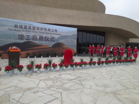 Στη διάρκεια του συνεδρίου είχαμε την τύχη να παρευρεθούμε στα εγκαίνια του υπερσύγχρονου κέντρου πληροφόρησης επισκεπτών του Μογκάο και κυρίως να παρακολουθήσουμε την ψηφιακή περιήγηση στις σπηλιές, στις οποίες ξεναγηθήκαμε την επομένη μέρα. Το κτήριο του Κέντρου μορφολογικά έχει σχεδιαστεί ώστε να προσομοιάζει με το ανάγλυφο των γύρω αμμόλοφων και επομένως είναι απόλυτα εναρμονισμένο με το περιβάλλον.