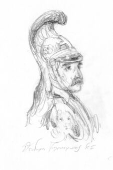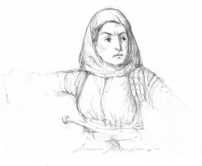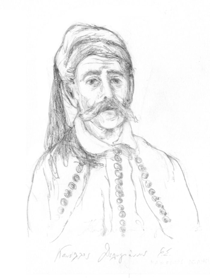Όσο παρακολουθώ τη μύτη του μολυβιού να χαράσσει τα σχέδια, μοιάζει η ζωγράφος να μην βίωσε τις υποθετικές αυτές δυσκολίες. Κι ενώ σέβεται τον τρόπο με τον οποίο μας παραδόθηκαν οι μορφές (αρκεί, για παράδειγμα, η παραβολή της δικής της προσωπογραφίας του Νικηταρά με αυτήν του Κράτσαϊζεν) είναι αυτή που τις ζωγραφίζει.