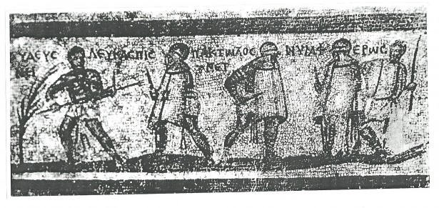 Ο τρύγος και το πάτημα των σταφυλιών είναι οι μόνες αγροτικές εργασίες που απεικονίζονται στα ελλαδικά ψηφιδωτά της περιόδου, αντίθετα απ’ ό,τι συμβαίνει στις δυτικές επαρχίες όπου οι παραστάσεις διαφόρων εργασιών συνοδεύουν παραστάσεις μηνών [σημ. 7]. Οι ελλαδικές παραστάσεις είναι τέσσερις, από την Κίσαμο, το Άργος, την Πάτρα [σημ. 8] και ακολουθούν την εικονογραφία που αναπτύχθηκε στη Β. Αφρική, ιδίως όσον αφορά τις παραστάσεις στις οποίες το αμπέλι καταλαμβάνει όλη την επιφάνεια του τάπητα, αν και στις ελλαδικές περιπτώσεις η εξάπλωση του αμπελιού περιορίζεται στην επιφάνεια ενός σχετικά μικρού διαχώρου [σημ. 9]. Οι τρυγητές και οι ληνοβάτες φορούν τα ρούχα των αγροτών (εξωμίδα ή περίζωμα, ανάλογα με την εργασία) και κρατούν ή φέρουν στο ζωνάρι τους το ειδικό μαχαίρι (falcula) για την κοπή των καρπών. Στις σκηνές ληνού απεικονίζεται πάντα ο ληνός με τους κρουνούς και τα υπολήνια (πίθοι για τη συγκέντρωση του χυμού, του γλεύκους).
