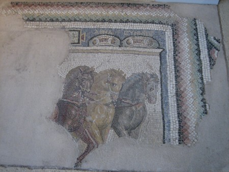 Οι παραστάσεις από τον ιππόδρομο είναι έξι. Πρόκειται για παραστάσεις ενός αρματοδρόμου πάνω στο άρμα του [σημ. 13] και παραστάσεις αγώνων εντός του ιπποδρόμου [σημ. 14]. Στην πρώτη περίπτωση απεικονίζεται ο νικητής αρματοδρόμος. Στην παράσταση της Θεσσαλονίκης δηλώνονται με επιγραφή οι αγώνες (Πύθια) και το αγώνισμα (άρμα συνωρίς) και με την απεικόνιση δυο στεφάνων οι ισάριθμες νίκες του αρματοδρόμου (εικ. 2). Στην παράσταση του Άργους οι επιγραφές παρουσιάζουν τα ονόματα των αλόγων. Εντυπωσιακότερες είναι οι παραστάσεις με απεικόνιση του ιπποδρόμου. Σε αυτήν των Φιλίππων οι επιγραφές κατονομάζουν τους αρματοδρόμους και τα άλογά τους. Η λεπτομερής απεικόνιση του ιπποδρόμου και η αφηγηματικότητα με μικρές σκηνές που συμβαίνουν ταυτόχρονα καθιστούν αυτές τις σκηνές μοναδικές για τον ελλαδικό χώρο [σημ. 15].