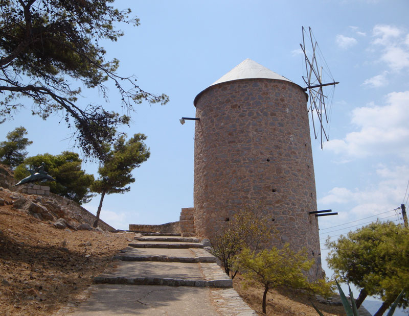 Ο οικισμός της Ύδρας είναι γνωστός περισσότερο για τα αρχοντικά του και για την αμφιθεατρική του διάταξη πάνω στους λόφους που πλαισιώνουν το λιμάνι. Λιγότερο γνωστοί είναι οι ανεμόμυλοι, οι οποίοι δέσποζαν στο λιμάνι στα τέλη του 18ου αιώνα (σημ. 1). Πράγματι, ανεμόμυλοι ή κατάλοιπα αυτών εντοπίζονται σε διάσπαρτες θέσεις και σε όλη την έκταση του οικισμού. Συγκεκριμένα, εντοπίζονται δύο στα Καμίνια (ανεμόμυλοι 1-2), τρεις στη συνοικία του Λόφου (3-5), επτά στο λόφο δυτικά του λιμανιού (6-12), δύο στο λόφο ανατολικά του λιμανιού (13-14) και, τέλος, δύο στα νότια του οικισμού και σε απόσταση από αυτόν (15-16) (εικ.1). Για την έρευνα των ανεμόμυλων της Ύδρας χρήσιμα στοιχεία προκύπτουν από το συσχετισμό με την ιστορία του οικισμού και του ελληνικού ανεμόμυλου, από τις απεικονίσεις και φωτογραφίες του οικισμού, καθώς και από την παρατήρηση των αρχιτεκτονικών καταλοίπων. Ως ενδείξεις επίσης χρησιμεύουν η διακύμανση του πληθυσμού και η επέκταση του οικισμού. Οι βιβλιογραφικές αναφορές στους ανεμόμυλους της Ύδρας είναι λίγες, σύντομες και επικεντρώνονται είτε στην αρχιτεκτονική του οικισμού, είτε στους ανεμόμυλους άλλων περιοχών. Ιστορικά στοιχεία: Υποστηρίζεται ότι ο ανεμόμυλος λειτουργούσε στο Αιγαίο ήδη από το 12ο-13ο αιώνα, ενώ κατά το 16ο αιώνα είχε πλέον διαδοθεί (σημ. 2). Η διάδοσή του όμως στον ελλαδικό χώρο παραμένει ακόμα θολή. α) 15ος-αρχές 19ου αιώνα: Η ιστορία του οικισμού της Ύδρας ξεκίνησε στα 1460, όταν κύματα προσφύγων έφτασαν στο νησί. Τέτοια κύματα συνεχίστηκαν κατά το 16ο και 17ο αιώνα. Οι πρώτοι κάτοικοι εγκαταστάθηκαν στην περιοχή του Προφήτη Ηλία, νότια του οικισμού και σε μεγάλο υψόμετρο. Στη συνέχεια συγκροτήθηκε ο οικιστικός πυρήνας της Κιάφας, σε χαμηλότερο υψόμετρο. Από τα μέσα του 17ου και καθ’ όλο το 18ο αιώνα οι Υδραίοι ασχολήθηκαν με το θαλάσσιο εμπόριο, ευνοημένοι από τις διεθνείς συγκυρίες. Στα τέλη του 18ου και στις αρχές του 19ου αιώνα η Ύδρα έφτασε στο απόγειο της ακμής της. Ο οικισμός απολάμβανε πλούτη, ενώ το 1778 ο Σουλτάνος παραχώρησε το προνόμιο της αυτοδιοίκησης. Η τάξη των νοικοκυραίων διαμορφώθηκε και χρηματοδότησε την ανοικοδόμηση αρχοντικών. Ο πληθυσμός διαρκώς αυξανόταν και το 1794 ξεπερνούσε τις 11.000, με αποτέλεσμα ο οικισμός να επεκταθεί προς το λιμάνι (εικ. 2) (σημ. 3). Μέσα σ’ αυτό το πλαίσιο κάνει την εμφάνισή του ο ανεμόμυλος. Η λειτουργία του ευνοήθηκε από τους βόρειους άνεμους που πνέουν με την κατάλληλη ανεμοδύναμη και συχνότητα, σε συνδυασμό με την ανυδρία του νησιού, που εμπόδιζε τη λειτουργία υδρόμυλων. Πλήθος ανεμόμυλων διακρίνεται στις πρωιμότερες γνωστές απεικονίσεις της Ύδρας, οι οποίες οφείλονται στον Th. Hope και στον A.-L. Castellan. Πρόκειται για απόψεις του οικισμού από τα Βόρεια ή τα Νότια. Μία από τις υδατογραφίες του Hope έχει χρονολογηθεί στα 1795 περίπου, ενώ μια δεύτερη στους χρόνους πριν το 1806. Η χαλκογραφία του Castellan φιλοτεχνήθηκε από τον ίδιο κατά το ταξίδι του προς την Κωνσταντινούπολη το 1797 και συμπεριλήφθηκε στο έργο του, που εκδόθηκε το 1808 (σημ. 4). Όμως, αν και οι απεικονίσεις αυτές χρονολογούνται στην ίδια περίοδο, παρουσιάζουν διαφορές ως προς τη μορφολογία του Μητροπολιτικού Ναού και του κωδωνοστασίου του. Επίσης, ενώ θεωρείται ότι η χαλκογραφία του Castellan αποτυπώνει την άποψη του λιμανιού από τη θέση των Καλών Πηγαδιών, δηλαδή από τα Νοτιοανατολικά, ο Ναός και το κωδωνοστάσιο παριστάνονται ανεστραμμένα ως πρ