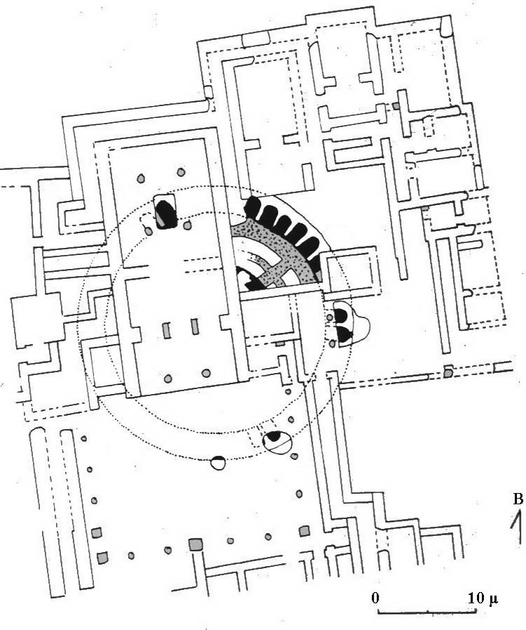 6. Κάτοψη του ΠΕ ΙΙ «Κυκλικού Κτηρίου» κάτω από τα υστερότερα κτήρια στην Τίρυνθα.
