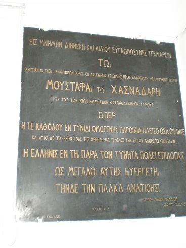 Πολύ σημαντική, επίσης, ήταν η συμβολή των δύο Χιωτών αδελφών στην ζωή της ελληνικής κοινότητας της Τύνιδας. Στην αφήγηση της Ευγενίας Στραβελάκη αναφέρεται πως ο Γιάννης Στραβελάκης παρέμεινε χριστιανός και έκτισε δύο εκκλησίες: τον Άγιο Γεώργιο και τον Άγιο Ιωάννη (σημ. 44). Ο Άγιος Γεώργιος βρίσκεται στην καρδιά της Τύνιδας, πίσω από τον καθεδρικό ναό των Καθολικών (Αρχιεπισκοπή) στην 5 rue de Rome. Εντύπωση προκαλεί η εγγύτητα του ναού με το παλάτι του Mustapha Khaznadar. Στο ναό του Αγίου Γεωργίου και πιο συγκεκριμένα μέσα στο πνευματικό κέντρο του ναού υπάρχει τιμητική επιγραφή για τον Mustapha Khaznadar της ελληνικής κοινότητας της Τύνιδας. Η επιγραφή φέρει την ημερομηνία Κατά μήνα Ιούλιον 1917 (1 Σεπτ. 1917). Στο κείμενο διαβάζουμε: «Εις μνήμην διηνεκή και αϊδίου ευγνωμοσύνης τέκμαρσιν/τω/χριστιανών μεν γεννητόρων γόνω εν δε καιροίς κρισίμοις προς αλλοτρίαν μεταπεσόντι πίστιν/Μουσταφά των Χασναδάρη/[εκ του των Χίων Χαλκιάδων ή Στραβελάκηδων γένους]/ώπερ/η τε καθόλου εν Τύνιδι ομογενής παροικία πλείσθ’ όσα ώφληκε/ και αυτό δε το ιερόν τόδε της Ορθοδοξίας τέμενος την αυτού αναφέρει υπόστασιν/ η ελληνίς εν τη παρά τον Τύνητα πόλει επιλογάς/ως μεγάλω αυτήν ευεργέτη/τήδε τη πλάκα ανατίθησι. Η επιγραφή κάτω αριστερά φέρει την υπογραφή M. Funaro. Πρόκειται για τον ιταλό εβραϊκής καταγωγής γλύπτη, Fumaro, ο οποίος εγχάραξε την επιγραφή.