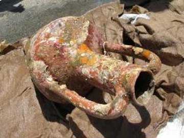 Ένα πήλινο θήλαστρο μαζί με τρία άλλα αγγεία, που είχαν εναποτεθεί ως προσφορά επάνω στη μικρή λάρνακα με την ταφή ενός βρέφους, βρέθηκαν κατά την ανασκαφή στο αρχαίο νεκροταφείο της Τροιζήνας