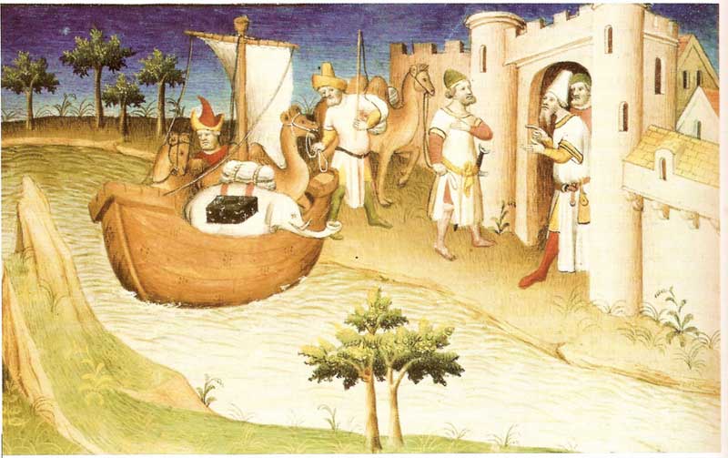 Ο Μάρκο Πόλο ταξιδεύει. Μικρογραφία από το βιβλίο «Τα ταξίδια του Μάρκο Πόλο», που πρωτοεκδόθηκε ενώ ο Μάρκο Πόλο ήταν εν ζωή.