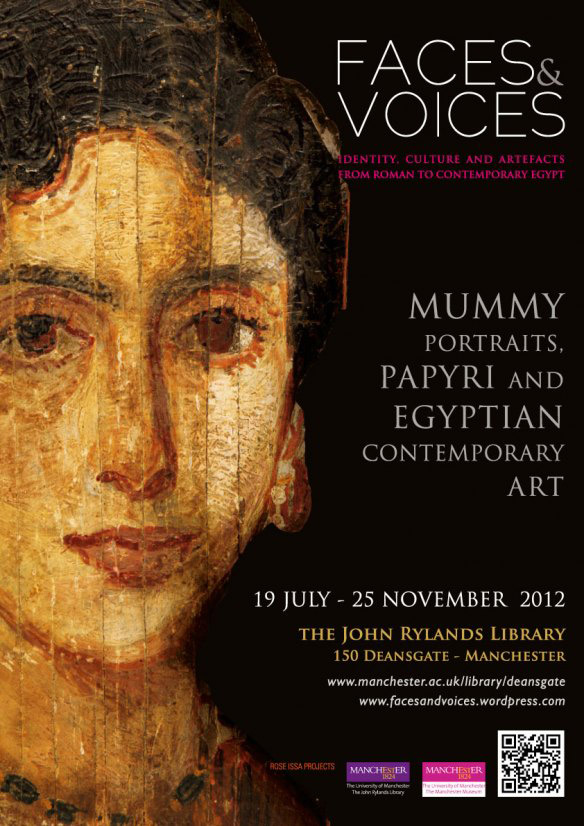 Έκθεση με τίτλο Faces&Voices παρουσιάζει νεκρικά πορτρέτα από την Αίγυπτο σε συνδυασμό με έργα του σύγχρονου Αιγύπτιου καλλιτέχνη Fathi Hassan. Tα πορτρέτα προέρχονται από τις συλλογές του Πανεπιστημίου του Manchester.