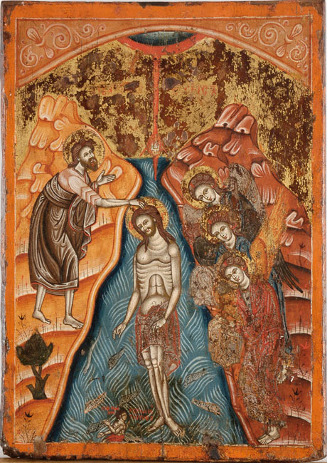 «Η Βάπτιση». Μέσα του 18ου αιώνα. Tέμπερα σε ξύλο. Από τη Βαμβακού Λακωνίας.