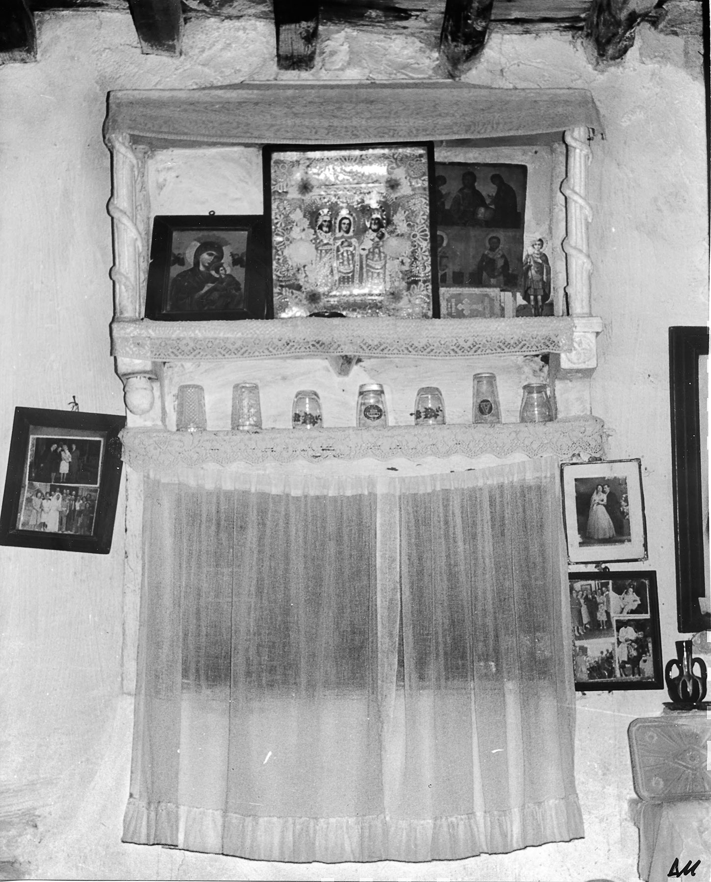 Στο φουρνόσπιτο παρατηρούμε εσωτερικά το κόσμημα του φούρνου που σηματοδοτεί τη βασική λειτουργία του, ενώ στην εξωτερική του όψη την κατασκευή της καμπύλης κλίμακας που περιβάλλει την κυκλική περιτοίχιση του φούρνου και εξασφαλίζει την πρόσβαση στο επίπεδο δώμα του. Στον περιστεριώνα για τον οποίο διαθέτουμε περιορισμένο αρχειακό υλικό με απεικόνιση στην πλήρη μορφή του, δηλαδή με το υπερυψωμένο κυλινδρικό στοιχείο του, φαίνεται να υπάρχει ένα μικρό παράθυρο με κοιλόκυρτο κυμάτιο, στη μορφή και τις διαστάσεις ενός συνηθισμένου εικονοστασίου των σπιτιών του Μεσαγρού (σημ. 5).
